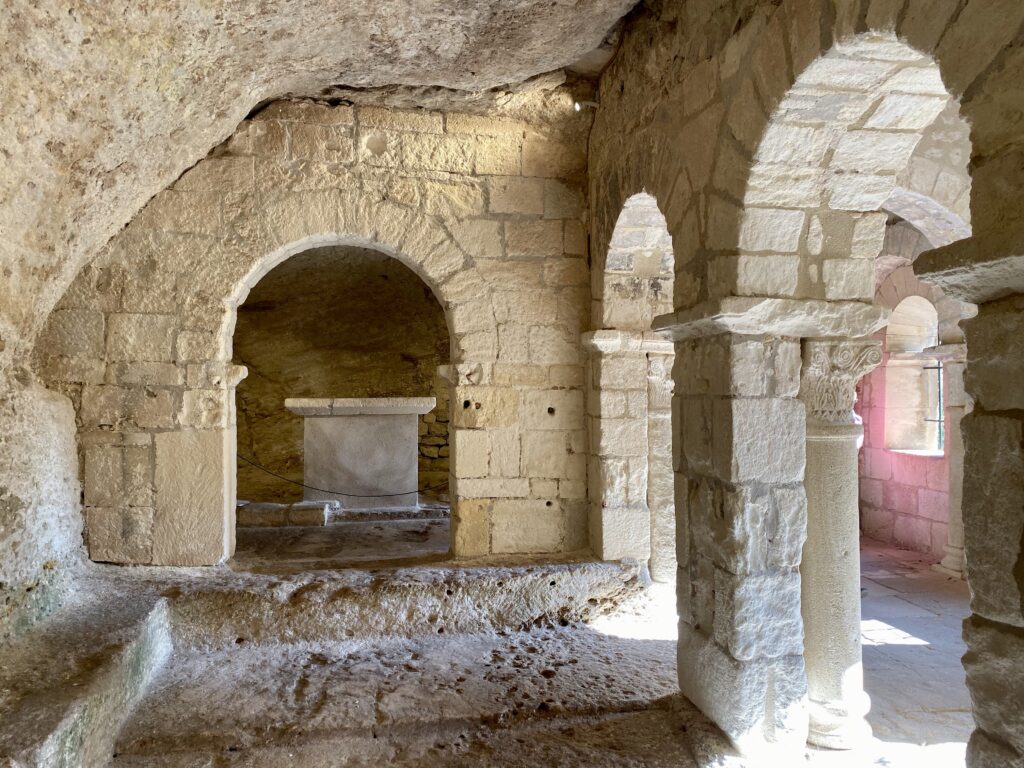 Situé sur le flanc sud du rocher de Montmajour, cet ermitage constitue la première occupation organisée du site. Il comprend une chapelle et des cellules troglodytiques utilisant une faille naturelle. Les aménagements visibles aujourd’hui datent essentiellement des XIᵉ–XIIᵉ siècles et illustrent une transition fréquente : une implantation erémitique primitive servant de base spirituelle à l’abbaye monumentale édifiée ultérieurement. En savoir plus…